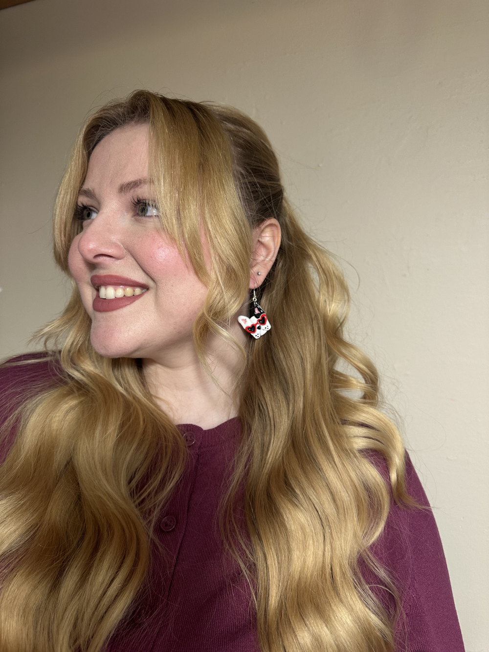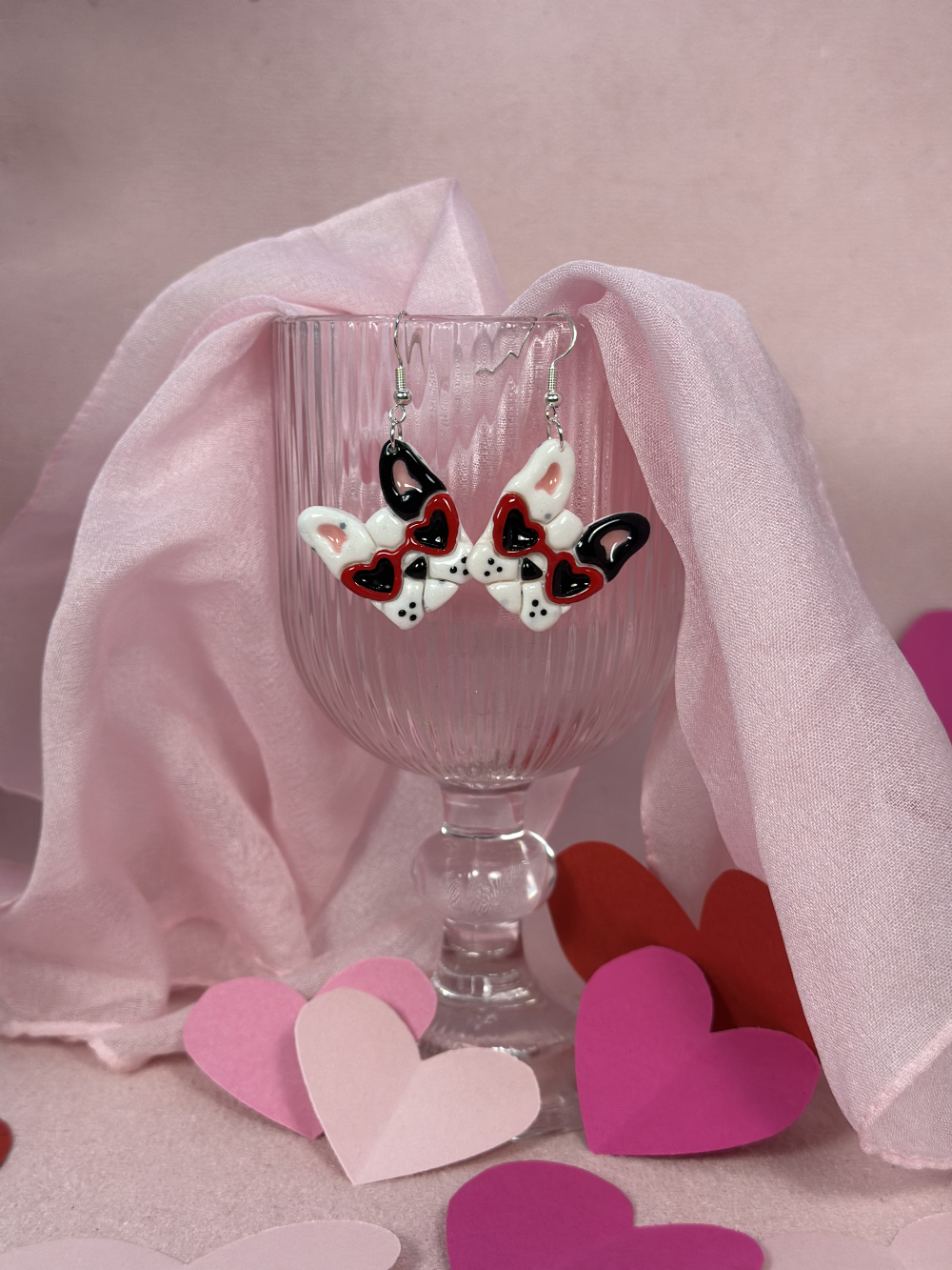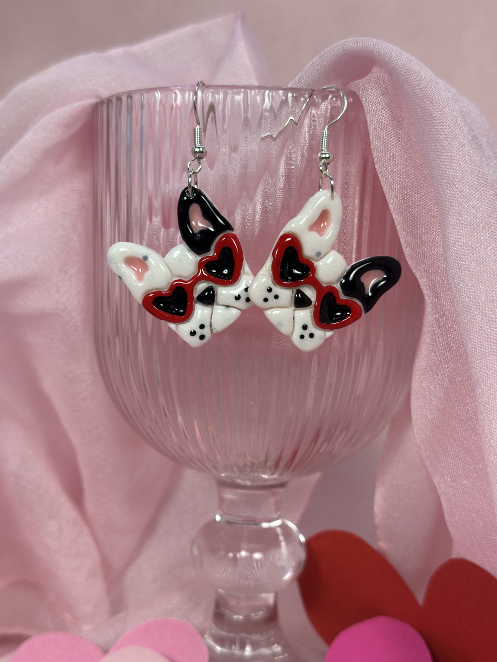Χειροποίητα σκουλαρίκια σε σχήμα σκυλάκια με γυαλιά καρδούλες. Φτιαγμένα με αγάπη απο πολυμερικό πηλό και ρητίνη. Τα κουμπώματα είναι απο ανοξείδωτο ατσάλι, ιδανικό για ευαίσθητο δέρμα.