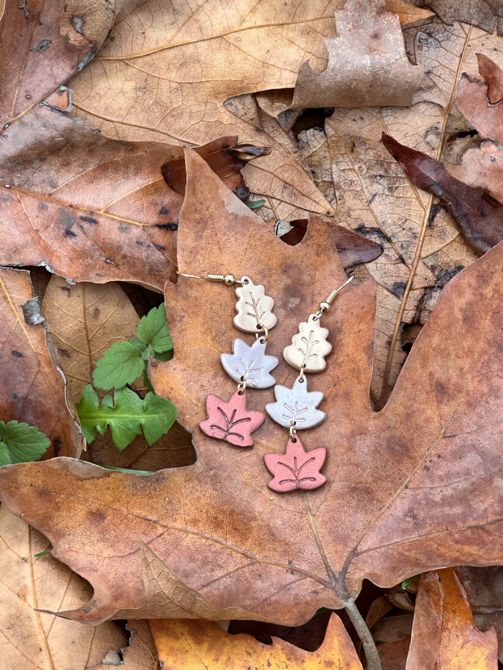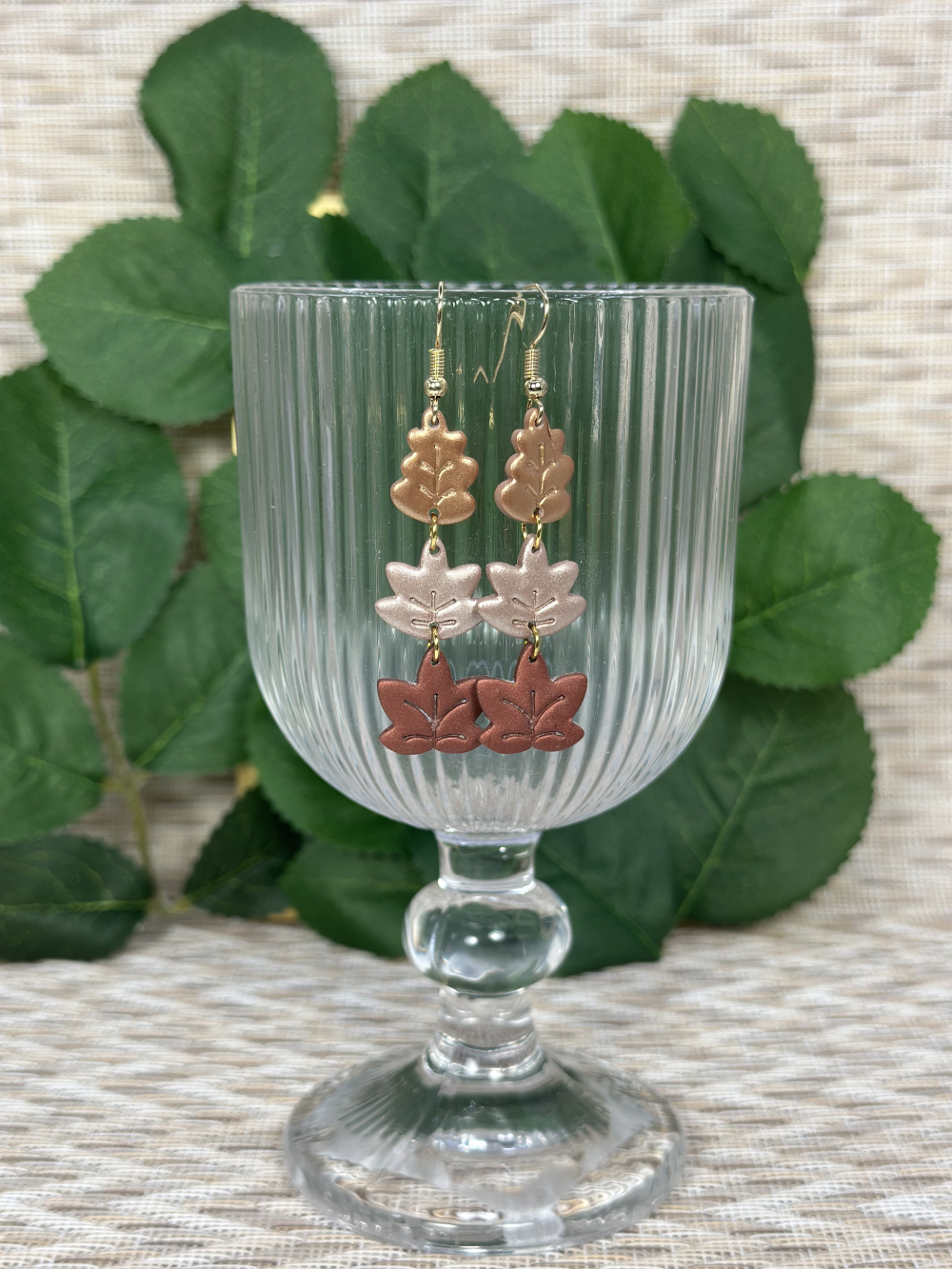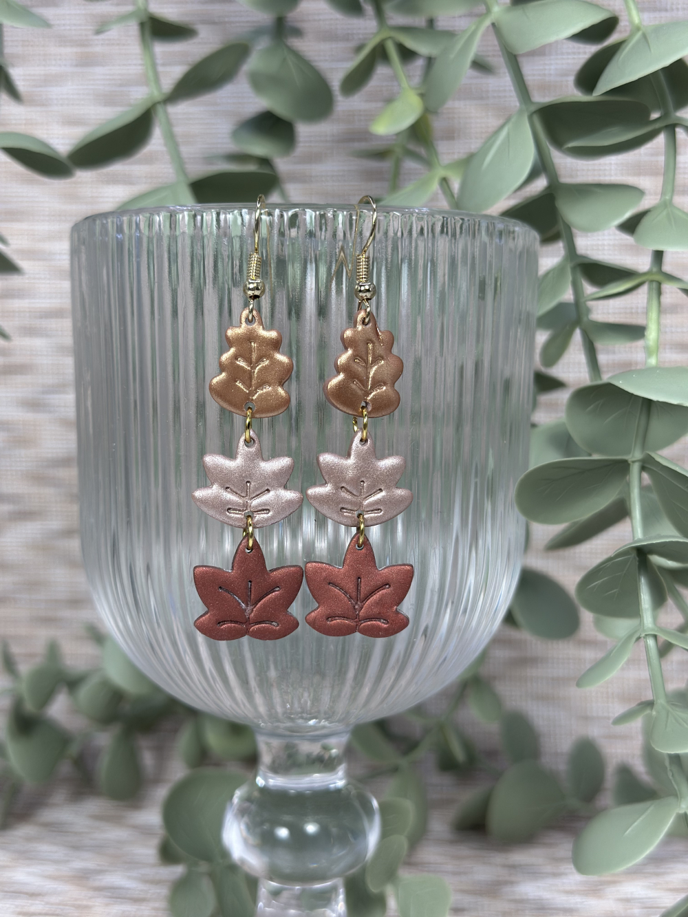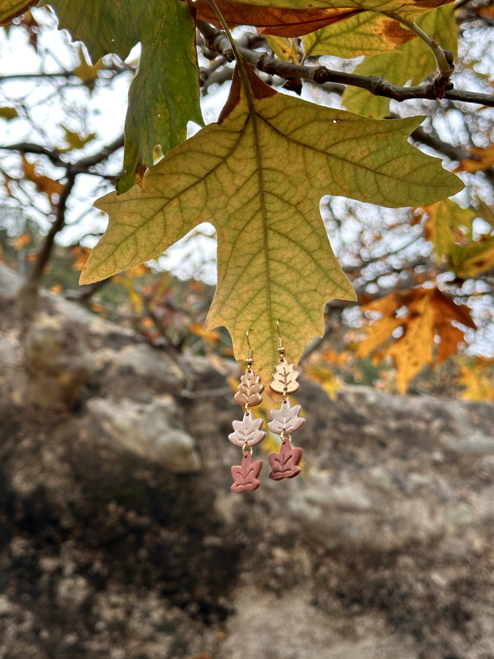 Handmade autumn leaves, in metallic earthy tones. Made with love out of polymer clay. The earring hoops are stainless steel, ideal for sensitive skin.