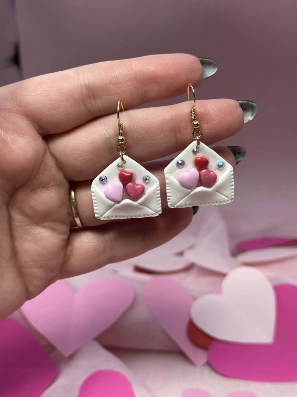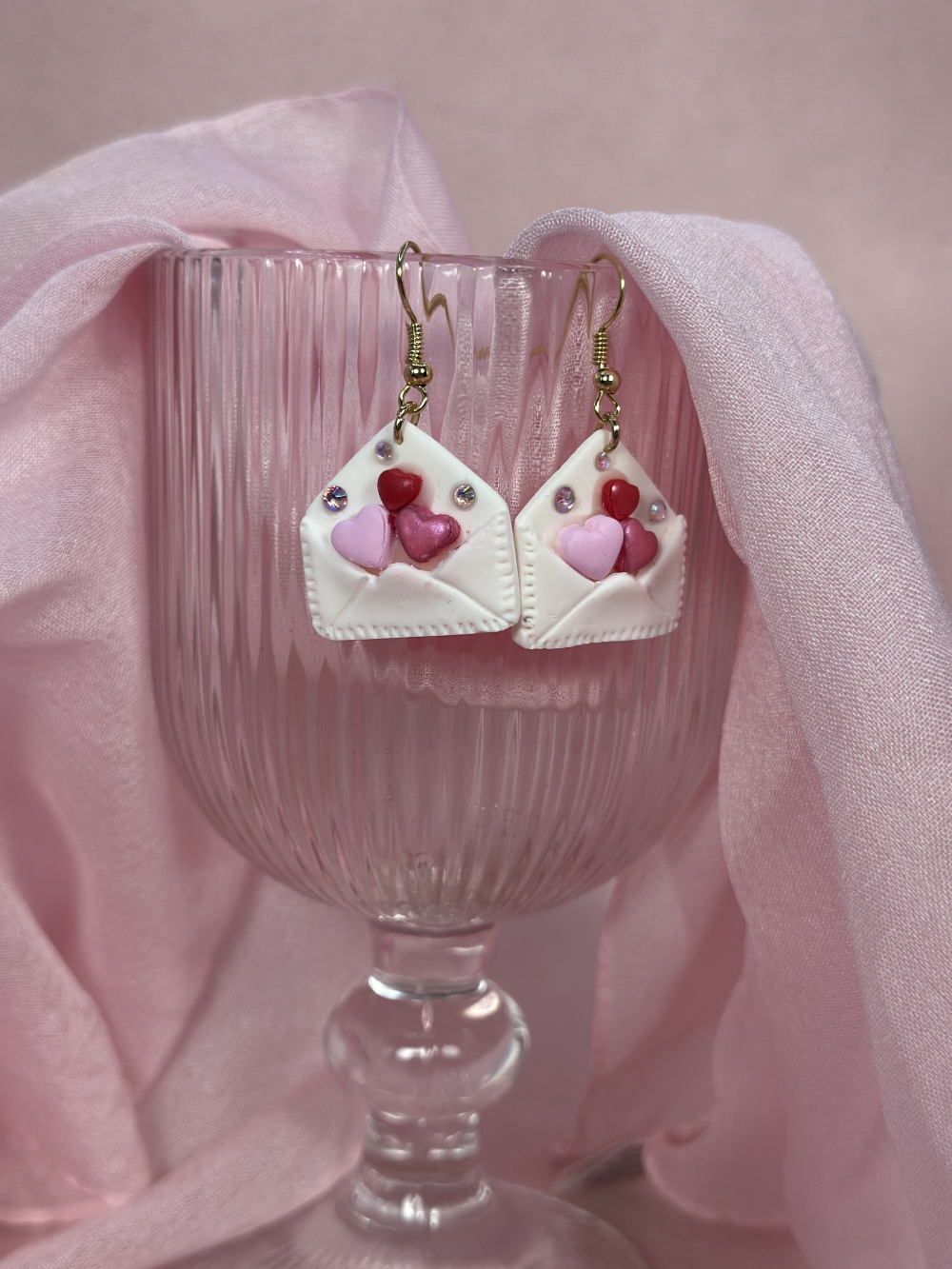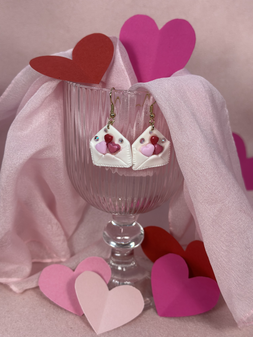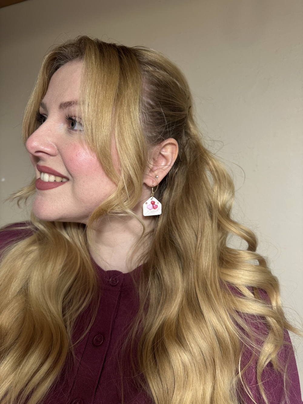 Handmade heart letter earrings in white and pink tones. Made with love out of polymer clay. The earring hoops are stainless steel, ideal for sensitive skin.