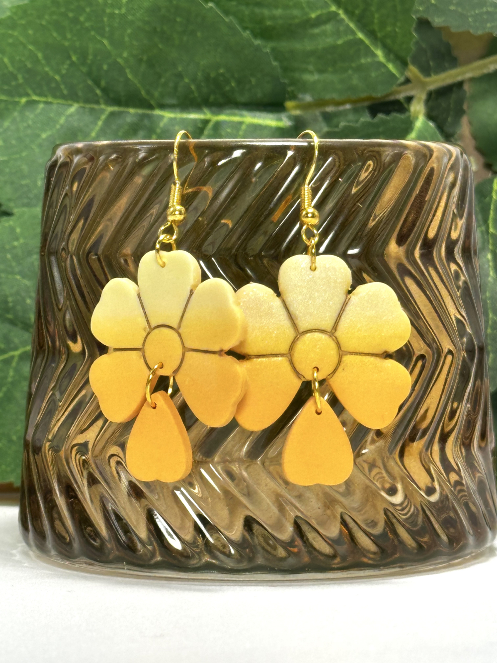 The yellow ombre flower earrings are made out of polymer clay, with yellow and orange colors. All metal elements of the piece are made out of stainless steel, which is hypoallergenic and ideal for sensitive skin.